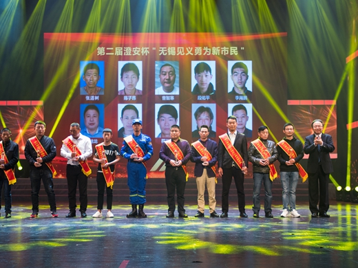 晚会现场,李小敏等领导为第二届澄安杯“无锡见义勇为新市民”和爱心企业代表颁奖。