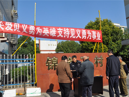 二是广泛开展社会面宣传。各级见义勇为组织、基层公安机关因地制宜,在人流密集区域广场、社区设立60余个宣传点,设置展板、发放宣传资料、接受群众咨询以及志愿服务,依托50余个户外LED屏、电子广告屏循环投播宣传短片,在200余个户外广告栏、橱窗等悬挂、张贴见义勇为宣传标语横幅、宣传海报,广泛宣传见义勇为法规、见义勇为人员权益保护政策措施等,江阴等地电视、广播还对宣传活动进行采播;同步组织500余名社区民警、见义勇为工作者入户走访,为见义勇为人员排忧解难。期间,全市共发放各类宣传资料、宣传品8000余份,接受群众咨询5000余人次。