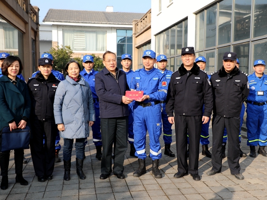 1月23日上午,无锡市见义勇为基金会理事长王立人,市局党委委员、副局长、政治部主任胡晓,市见义勇为基金会特邀副理事长金志标,常务副理事长朱民治,副理事长边宪华、苏学文等领导分两组,上门走访慰问见义勇为烈士钱劲松、吴志明家属和陈渭青、王水香、梁家国、徐伟芳等4名见义勇为先进代表,并受省见义勇为基金会委托对锡山区港下见义勇为工作站、无锡蓝天见义勇为志愿者服务大队进行慰问,送上慰问金、慰问品和新春祝福。