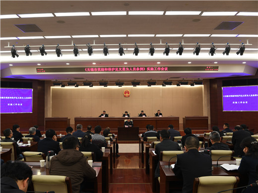 2月25日上午,市人大、市政府召开《无锡市奖励和保护见义勇为人员条例》实施工作会议,市委常委、政法委书记、副市长、公安局长谢晓军,市人大常委会党组副书记、副主任赵志新,市人大常委会党组成员陈荣庆,市见义勇为基金会理事长王立人出席会议。市公安局党委委员、副局长、政治部主任胡晓在会上作表态发言。