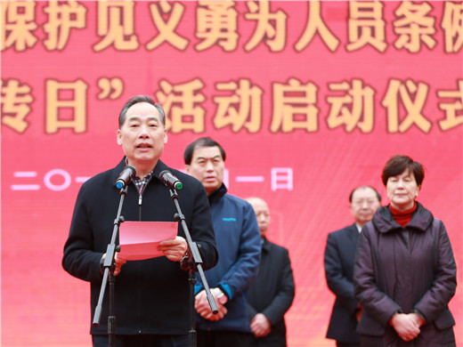朱民阳同志在讲话中指出,《条例》的实施,是认真贯彻落实习近平总书记提出的“要大力弘扬社会主义核心价值观,加强思想教育、道德教化,改进见义勇为英雄模范评选表彰工作,让全社会充满正气、正义”的新要求的具体行动,是全市人民政治生活中的一件大事、要事、实事、好事。要求准确把握《条例》精神实质和内涵,加大见义勇为表彰宣传力度,切实增强见义勇为工作整体合力,全力推动见义勇为事业融合发展。王立人同志通报了《条例》实施暨宣传日活动启动情况。