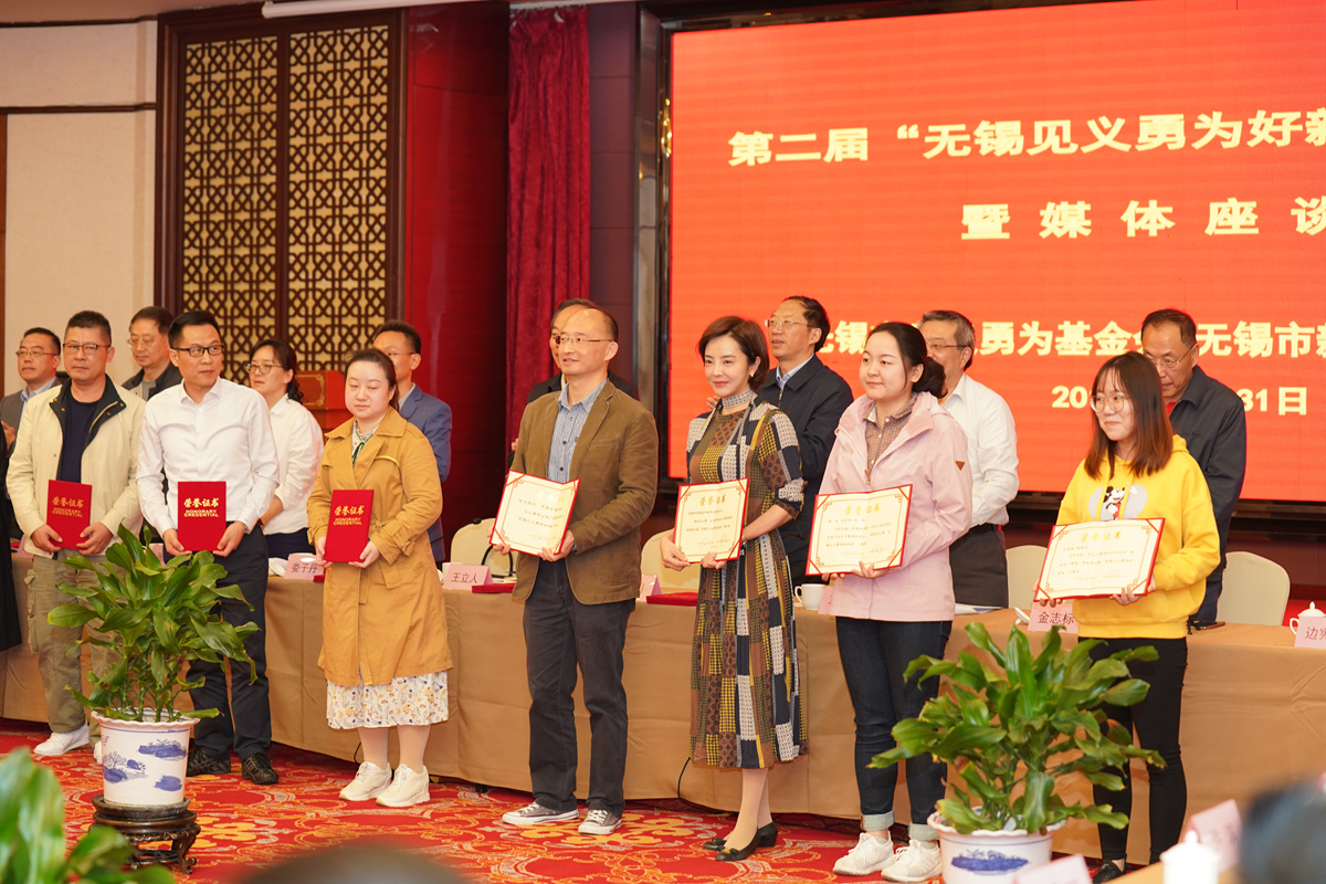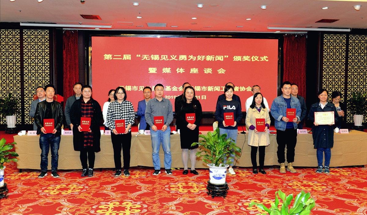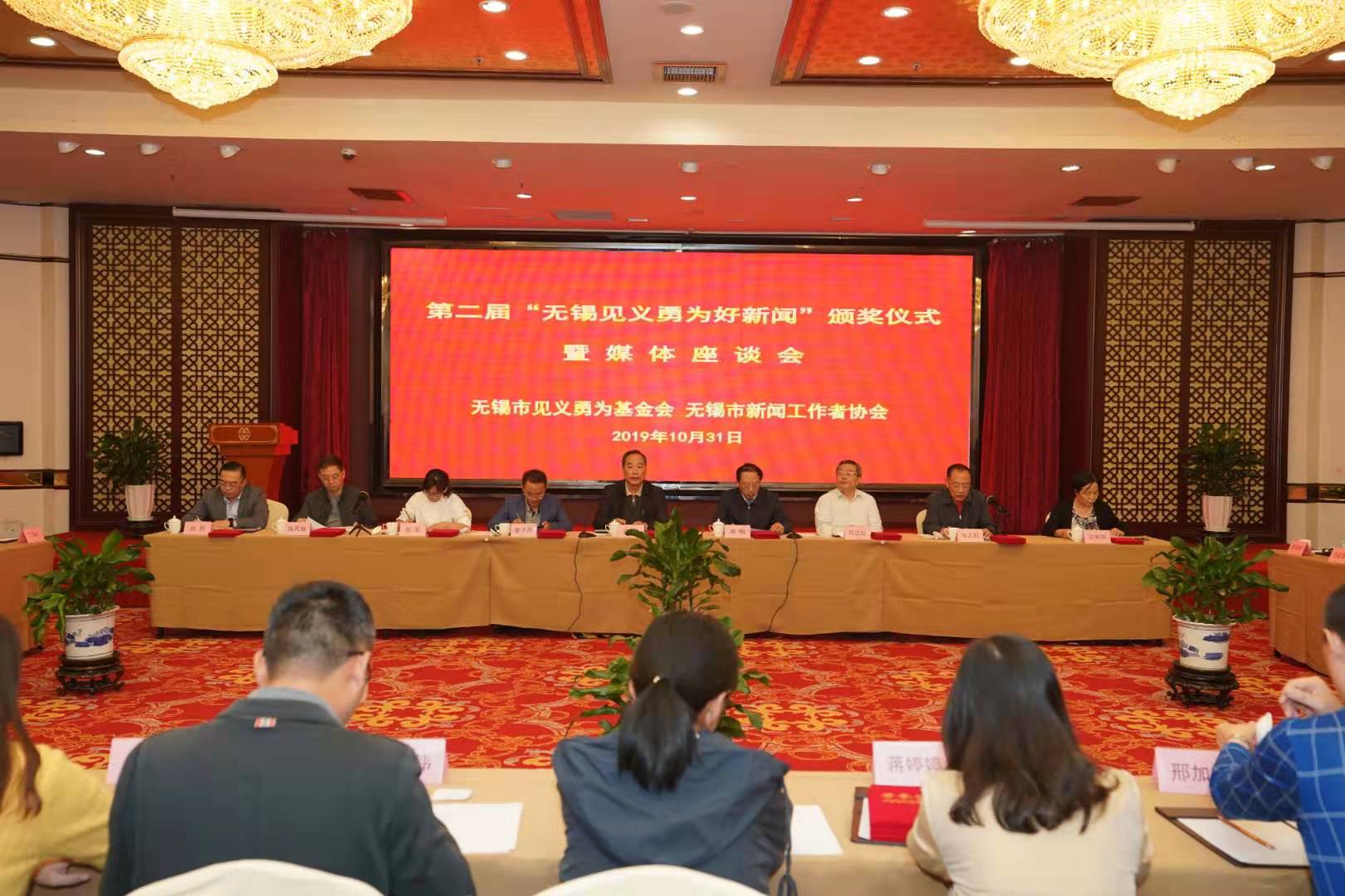 10月31日上午,无锡市见义勇为基金会举办第二届“无锡见义勇为好新闻”颁奖仪式暨媒体座谈会,市见义勇为基金会理事长王立人,市委宣传部副部长、市文明办主任商明,市委网信办副主任娄子丹,无锡日报报业集团总编辑马正红,无锡广播电视集团(台)总编辑张军,市见义勇为基金会副理事长朱民治,市新闻办副主任、市委宣传部新闻处处长刘烈等领导出席会议。市见义勇为基金会副理事长金志标主持会议,副理事长边宪华宣读表彰决定。会议通过视频短片回顾总结了近年来无锡见义勇为工作情况和取得的成绩,并表彰第二届“无锡见义勇为好新闻”。