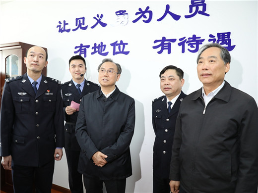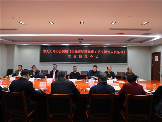 《无锡市奖励和保护见义勇为人员条例》于2019年3月1日施行。为及时了解《条例》宣传、贯彻、实施情况,11月21日下午,无锡市人大常委会主任徐一平带领调研组,先后赴惠山区钱桥街道见义勇为工作站、市见义勇为基金会,视察我市见义勇为工作,调研《条例》实施情况。