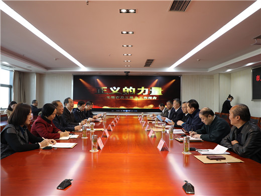 无锡市人大常委会副主任朱民阳主持调研座谈会,无锡市见义勇为基金会理事长王立人作汇报。