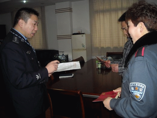 近日,受市见义勇为基金会委托,南长见义勇为工作办公室向协助公安机关破获散发法轮功宣传品案件的金星派出所保安王惠娟、新华物业保安惠民颁发见义勇为证书和奖金。巡防大队保安柳鑫、张汉懋协助公安机关破获徒步抢夺系列案件受到南长见义勇为工作办公室表彰奖励。