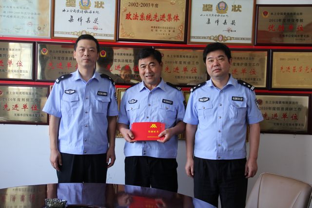 受市见义勇为基金会委托,7月10日上午,水上公安分局见义勇为办公室对勇救落水群众的黄埠墩派出所辅助人员高振祥予以表彰,颁发见义勇奖励证书和奖金,勉励他再接再厉,进一步弘扬见义勇为精神,在辅助人员中充分发挥表率作用,为创建平安水域作出新的更大贡献。