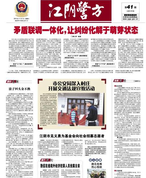 为弘扬见义勇为精神,引导全社会更加尊重和关爱见义勇为人员,江阴市局、江阴市见义勇为基金会认真贯彻落实省市两级见义勇为基金会关于建立见义勇为志愿者服务组织的通知精神,通过精心组织,积极动员,广泛宣传,圆满完成组建任务,收到良好社会效果。该局通过公安内外网、江阴电视台、大澄网、微信平台、QQ群等媒体平台,大力宣传见义勇为先进人物、先进事迹,激发广大民警、辅警和社会各界热心群众关心见义勇为事业,江阴市各见义勇为工作站也充分利用自身优势,为见义勇为志愿者服务大队招贤纳士,截止11月30日,江阴市见义勇为基金会共招募270名志愿者,其中民警68人、辅警83人、其他各界群众119人。下一步,江阴市局、江阴市见义勇为基金会将组织开展志愿者培训以及为生活困难的见义勇为人员送温暖等活动。