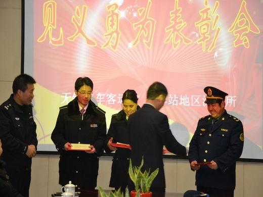 为进一步弘扬社会正气,传递社会正能量,倡导见义勇为精神,2月5日上午,受市见义勇为基金会及分局见义勇为工作办公室委托,交通治安分局车站地区派出所在无锡汽车客运站召开了见义勇为表彰会,对无锡汽车客运站3名见义勇为的职工进行表彰。无锡汽车客运站主要领导及车站地区派出所领导出席了此次表彰会。车站地区派出所领导代表见义勇为基金会及分局见义勇为工作办公室对见义勇为人员表示了亲切慰问,并颁发了证书及慰问金6000元,感谢他们为社会和谐稳定做出的贡献。3名见义勇为人员表示将再接再厉,继续为保护人民群众生命、财产安全、维护社会治安稳定贡献自己的力量。