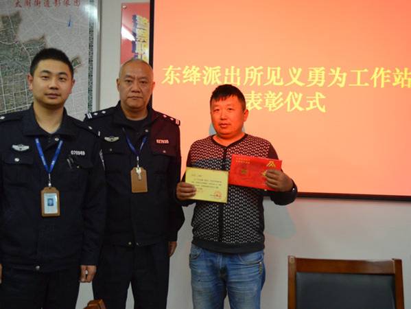 为进一步弘扬正气,传递社会正能量,4月28日上午,受市见义勇为基金会委托,东绛见义勇为工作站领导为协助警方追缉抢劫嫌疑人的外来务工人员白礼军颁发了奖励证书和奖金,对他不顾个人安危,全力协助警方追缉犯罪嫌疑人的见义勇为行为给予表彰与赞誉。